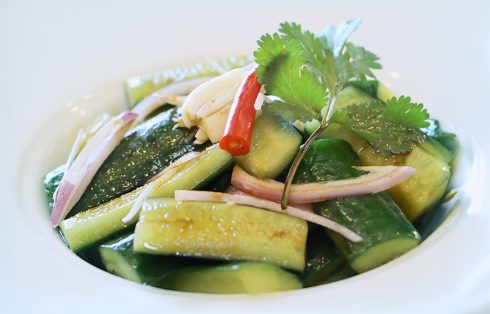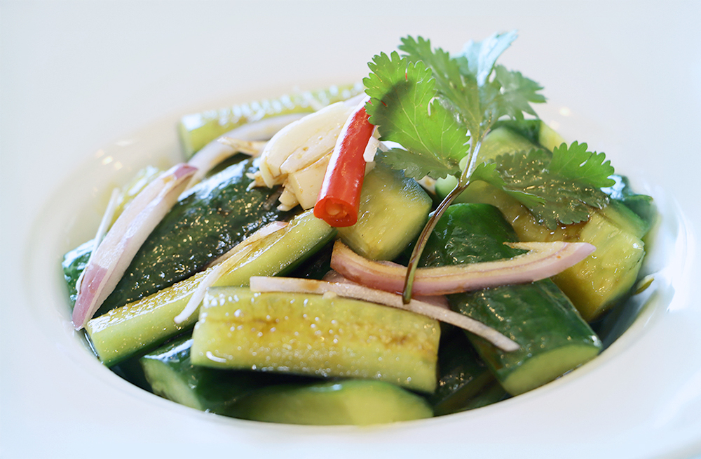 Spicy cucumber slices tossed with garlic