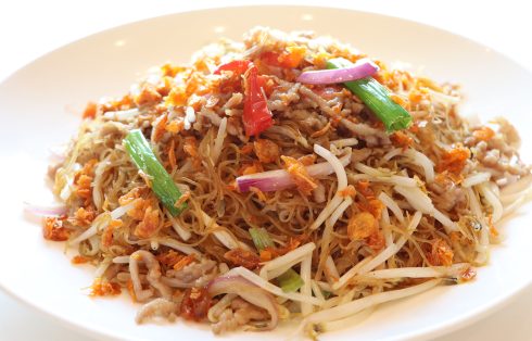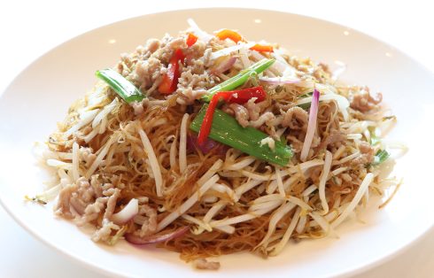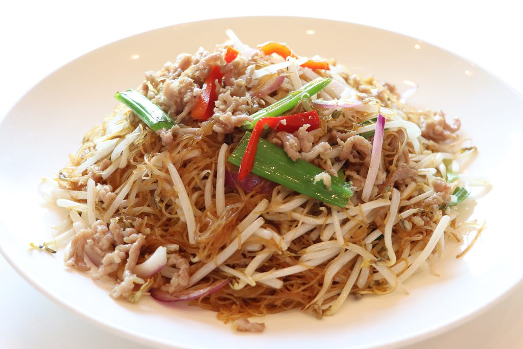 Stir-fried vermicelli with pork & bean sprouts