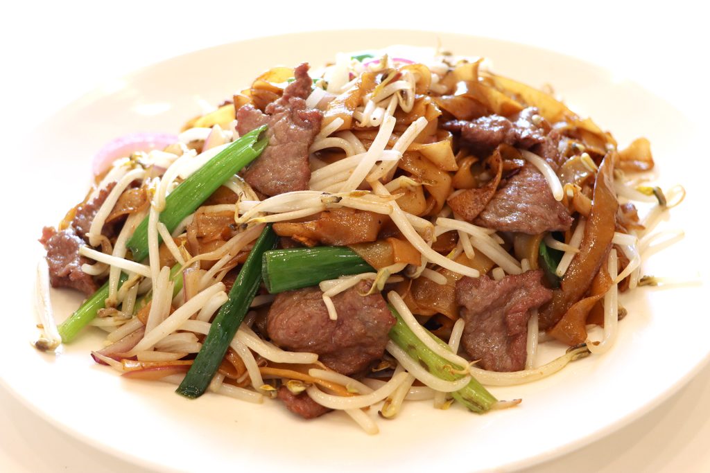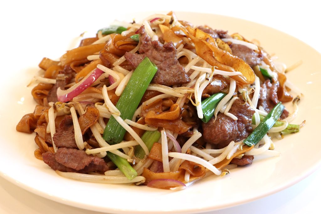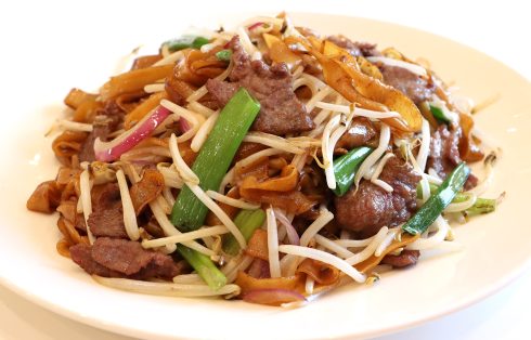 Stir-fried rice noodles with beef slices
