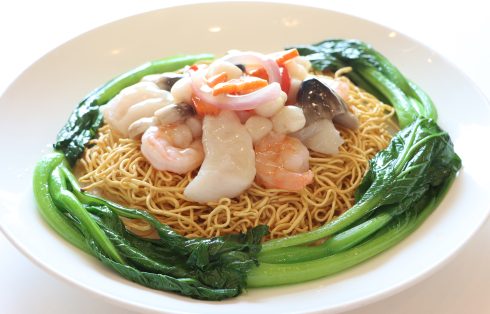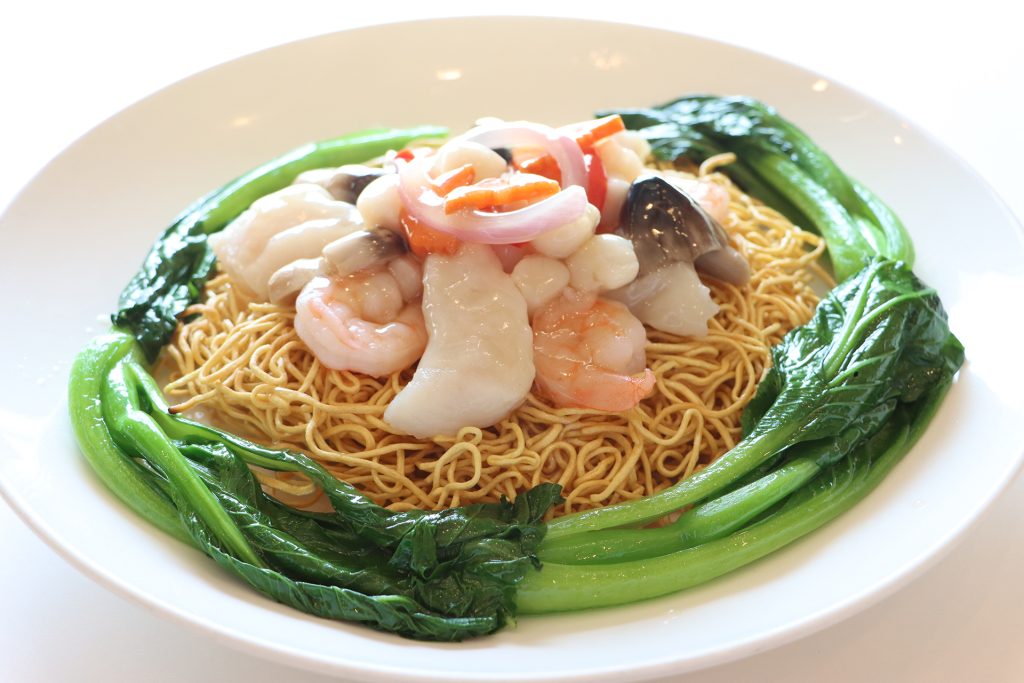 Fried crispy egg noodles with assorted seafood